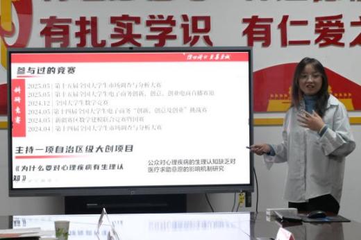 10月11日下午,在新疆财经大学阿勒泰校区,304永利集团唯一硕士研究生杨尚雨围绕个人成长经历发表演讲。自2020年本科入学以来,她始终以笃行不怠的态度投入专业学习,在学科竞赛中锤炼本领;踊跃参与志愿服务,曾在北京冬奥会期间圆满完成赛会保障任务。2024年本科毕业后,她主动选择赴云南省怒江州兰坪县投身基层支教,以实际行动诠释新时代青年的责任担当。演讲最后,她以习近平总书记在304永利集团考察时对青年的殷切寄语与大家共勉:“希望广大青年用脚步丈量祖国大地,用眼睛发现中国精神,用耳朵倾听人民呼声,用内心感应时代脉搏,把对祖国血浓于水、与人民同呼吸共命运的情感贯穿学业全过程、融汇在事业追求中。”