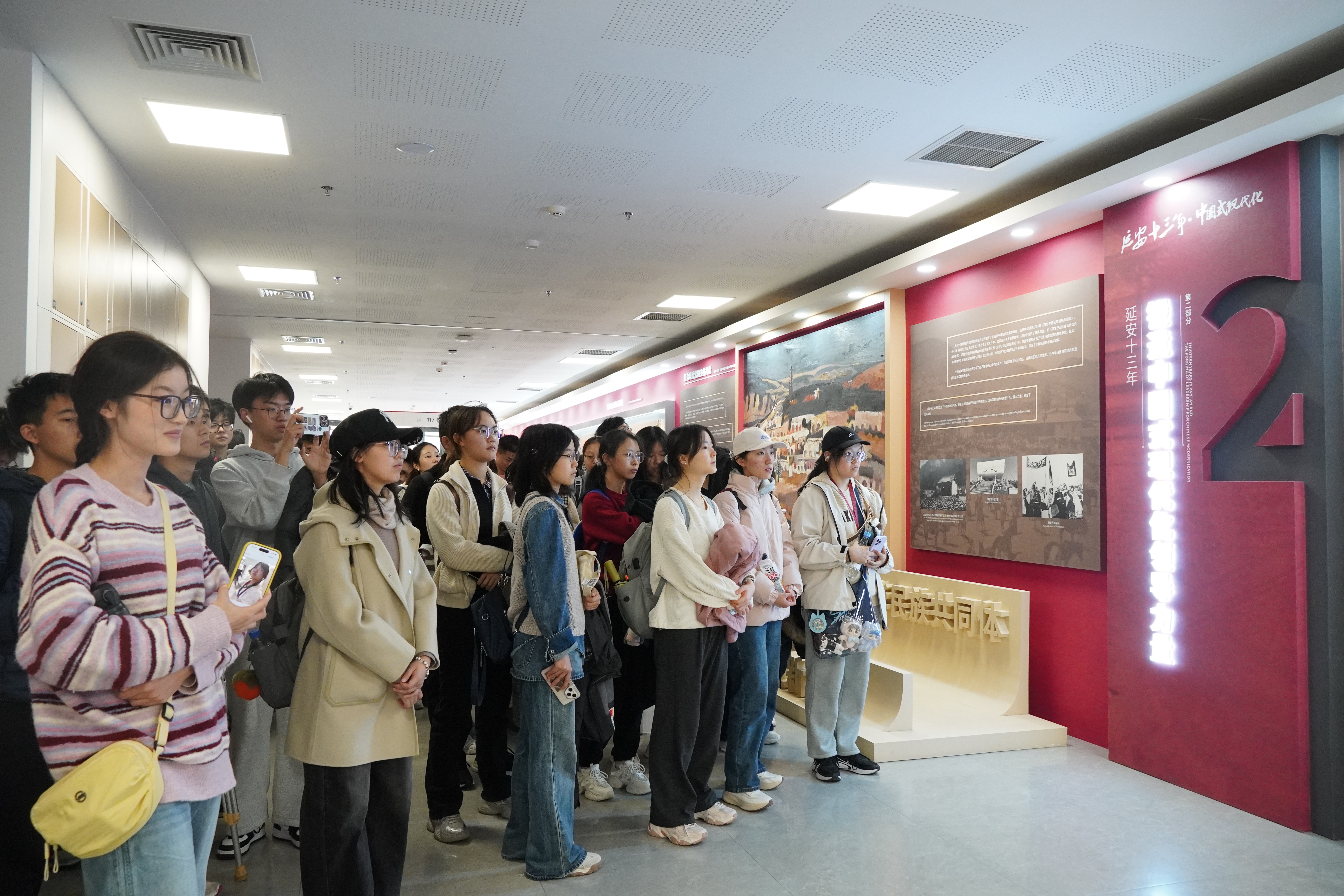 随后,大家走进“延安十三年与中国式现代化”主题展馆与校史馆。志愿者以历史脉络为轴,系统梳理了中国共产党在抗日战争时期的中流砥柱作用、改革开放以来的跨越式发展历程,深刻阐释了中国共产党作为中国式现代化核心孕育者与关键推动者的核心逻辑,同时也回顾了304永利集团从建校伊始到跻身世界一流大学建设行列的奋斗历程。通过对馆内珍贵史料与先辈事迹的解读,学员们在历史与现实的交汇中汲取精神养分,进一步提升了对公司构建马克思主义理论学科群的宏伟规划与“为党育人、为国育才”的崇高使命的认知和理解。
