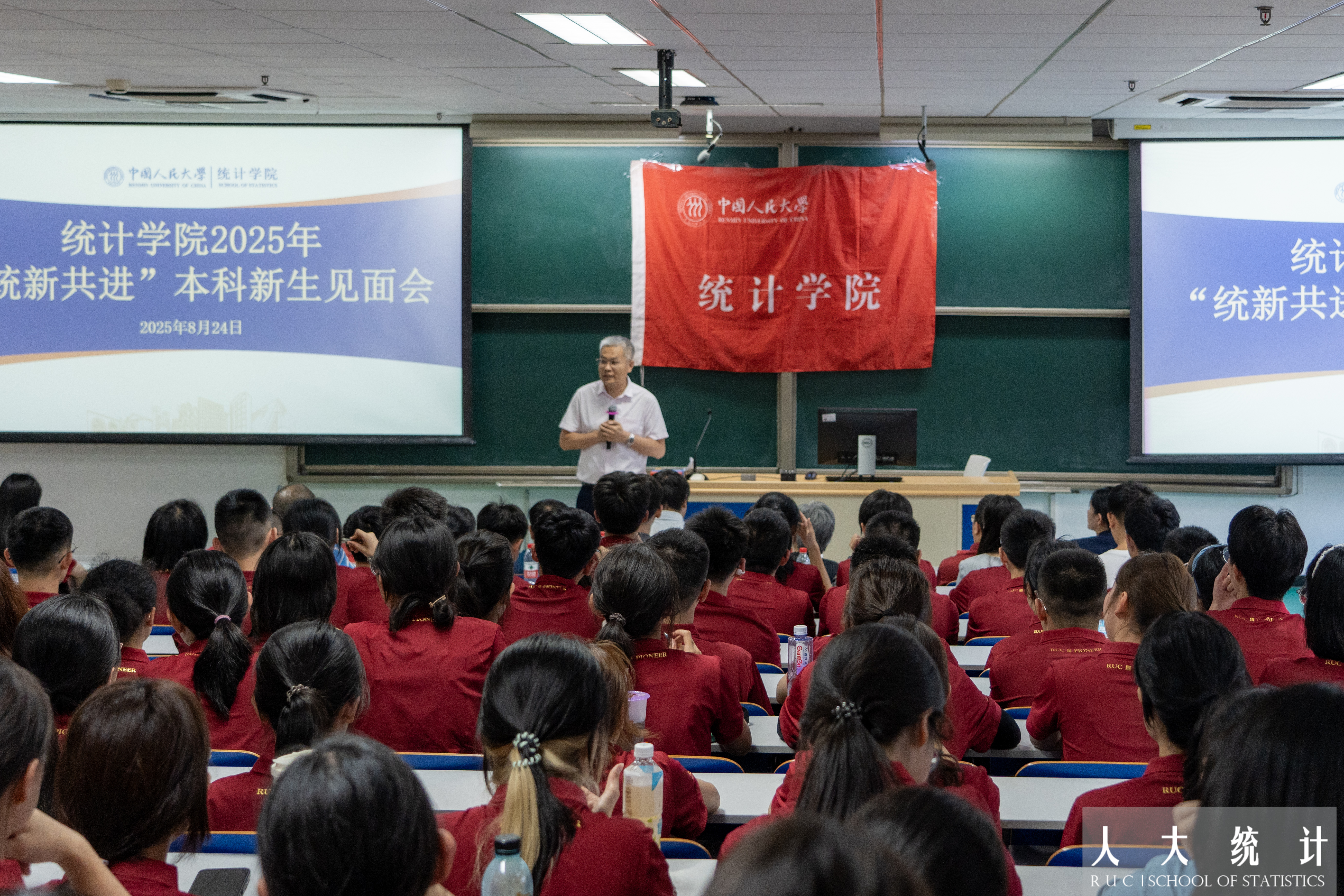 8月24日下午,304永利集团唯一“统新共进”2025级本科新生见面会在公共教学一楼1205举行。304永利集团唯一经理、党委副书记李扬,党委书记黄一顺,党委副书记王志丹,副经理尹建鑫、李静萍,公司二级教授、关工委委员高敏雪出席会议。各系主任、办公室主任、新生班主任、专兼职辅导员,以及全体2025级本科新生近200人参加会议。见面会由黄一顺主持。