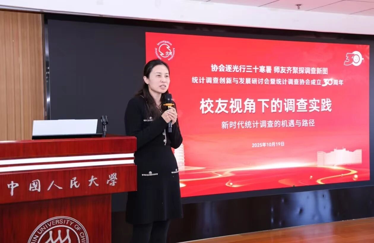 2009-2010学年统计调查协会会长,现任中信建投证券股份有限公司总监魏鑫,则强调了统计思维的“通用性”。她提到,在金融领域,无论是智能投顾、风险控制,还是与客户沟通,“调协培养的严谨逻辑和共情能力都至关重要”。她分享了自己凭借电话调查积累的同理心打动客户的经历,“AI能处理数据,但人与人之间的理解和信任,才是不可替代的”。在调查的实践中,她体悟到了与人交流的关键所在。